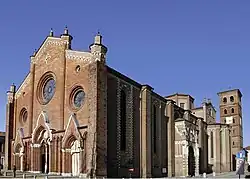 Asti Cathedral (Italian: Cattedrale di Santa Maria Assunta e San Gottardo; Cattedrale di Asti), the episcopal seat of the Diocese of Asti, is a Roman Catholic cathedral in Asti, Piedmont, Italy.[1] It is dedicated to the Assumption of the Blessed Virgin Mary and to Saint Gotthard, and at 82m long and 24m in height and width, is one of the largest churches in Piedmont, the highest expression of Gothic architecture of the region, and among the best examples of Lombard Romanesque appreciable in northern Italy.