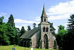 The Church inside the village is known as St Calixtus' church, named after Saint Calixtus.[2] The church is a stone building and has both Norman and Anglo Saxon roots. The church was originally constructed in 1138 and was later consecrated on 14 October 1138, by the Bishop of Hereford.[2] Since then, the majority of the church has been rebuilt.[2] However, the Church of England in Bridgnorth comment that there are still parts of the older church that still exist today.[2] Inside the Church can be found the faded remains of a 'maiden's garland', a heart-shaped wooden frame decorated with gloves, cloth and ribbons. Such garlands were once the fashion to commemorate maidens who died before marriage.[2] The one at Astley Abbotts has a ribbon-like piece of paper saying, in still legible handwriting, that it commemorates Hannah Phillips,[2] who drowned while crossing the River Severn a day or two before her wedding.[3]