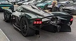 In 2021, the production-intent AMR Pro was unveiled, having a significantly more aggressive design, with an LMP1-style rear aerodynamic fin, a large dual-element rear wing, and a large rear diffuser.[38] In terms of this production-intent design, it looks more similar to the regular (but elongated) Valkyrie, than it did to the original concept. The number of produced cars was also increased from 25 to 40.