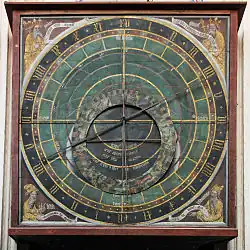 The astronomical clock of St. Nicholas Church, Stralsund is a 14th century monumental astrolabe clock. It was probably damaged in the 16th century, and has not worked since then. It is the only clock of its kind to have been preserved almost entirely in its original condition. The clockwork and the indications have not been restored.[1][2]