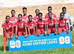 Asubo Ladies FC started as Gafford Girls Soccer Academy which then was renamed to Gafford Girls FC, Gafford Ladies FC, Asubo Gafford Ladies FC and now Asubo Ladies FC.