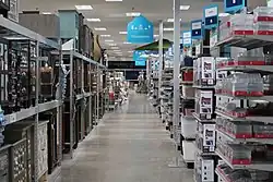 In 2019, the company expanded to the West Coast, opening stores in Puyallup, Washington that January and Lake Forest, California in March.[36][37] By April 2019, the company has expanded to 188 stores, but its stock had lost 40% of its value over the previous 12 months. As a result, it began looking for a potential buyer.[38] In May, it was reported that Kohl's was in preliminary discussions to buy the retailer.[39][40] Following a sudden drop in At Home's stock value in June, the company announced plans to slow its expansion efforts and finally offer online shopping.[41][42]