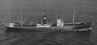 As built, Atago Maru was a Japanese cargo ship measured at 7,543 gross register tons (GRT), 134.1 m (440 ft 0 in) long between perpendiculars with a beam of 17.4 m (57 ft 1 in).[1] The ship was powered by twin Sulzer diesel engines and two screws rated at 2,000 horsepower (1,491 kW).[2] The vessel had a maximum speed of 13 knots (24 km/h; 15 mph).[1] In 1942, the vessel was converted to transport oil.[3]