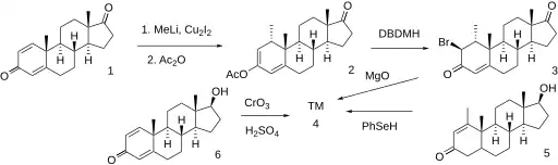 - ^ Künzer H, Sauer G, Wiechert R (1989). "Regioselective synthesis of ring a polymethylated steroids in the androstane series". Tetrahedron. 45 (20): 6409–6426. doi:10.1016/S0040-4020(01)89518-1.
