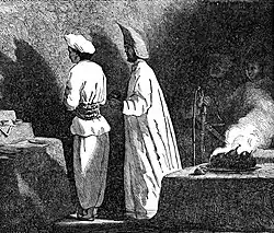Pierre Ponafidine visited the temple and noted meeting two priests from Bombay.[44] E. Orsolle, who also visited, stated that after the death of the Parsi priest in 1864, the Parsi Panchayat of Bombay sent another priest a few years later. However, by 1880, the pilgrims from India and Iran had largely forgotten the sanctuary, and there was no one left to attend to it.[45] O'Donovan visited the temple in 1879 and described the worship of the Guebres.[46]
