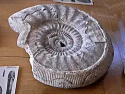 | Fossil of Lithacoceras achilles from France, on display at Galerie de paléontologie et d'anatomie comparée in Paris | |