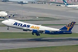 Atlas Air, Inc. is a major American cargo airline, passenger charter airline, and aircraft lessor based in White Plains, New York. It is a wholly owned subsidiary of Atlas Air Worldwide Holdings. Atlas Air is the world's largest operator of the Boeing 747, with 61 of the type. In 2021, the airline had 4,056 employees and operated to more than 300 global destinations.[2]