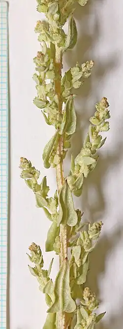 Atriplex truncata is a species of saltbush known by the common names wedgeleaf saltbush, wedgescale, and wedge orach, native to western North America from British Columbia to California and to New Mexico. It grows in montane to desert habitats with saline soils, such as dry lake beds.