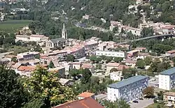 Aubenas is the centre of an urban area, composed of 22 towns and villages including Vals-les-Bains,[3] with 41,568 inhabitants (2018).[4] Aside from its long-year commercial activity, it has a good strategic position on the tourist field, at crossroads of a regional natural park, the zone of the Ardèche river canyon and the start of mountains. The chestnut industry is one testimony of the intense agricultural activity earlier in time.