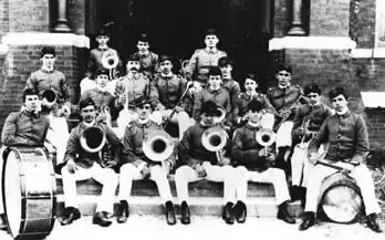 The Auburn University Marching Band (AUMB) is the marching band of Auburn University and the 2004 recipient of the Sudler Intercollegiate Marching Band Trophy.[1] With 380 members, the band traces its origins to 1897 when M. Thomas Fullan proposed to then-president Dr. William Broun that the drum corps accompanying cadet drills be replaced with a full instrumental band.