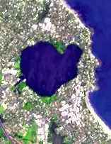 Pupuke crater from space in 2006