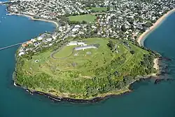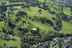 The warmer northern sides of the mountains were also popular among early Pākehā settlers for housing.[27] In the 1880s, Takarunga / Mount Victoria and Maungauika / North Head were developed as military installations due to fears of a Russian invasion.[27] The cones are also protected by a 1915 law, the Reserves and Other Lands Disposal and Public Bodies Empowering Act 1915, which was passed due to early concern that the distinctive landscape was being eroded, especially by quarrying. While often ignored until the late 20th century, it has amongst other things minimised severe changes to Mount Roskill proposed by Transit New Zealand for the Southwestern Motorway.[28]