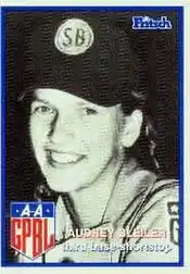 After being married in 1951, she played under the name of Audrey Seitzinger during the 1952 season, her last year in the league. South Bend swept the Grand Rapids Chicks in the best-of-three first round, and won their second title in a row after defeating the Rockford Peaches, 3 to 2 games. She was a .180 career hitter and batted .286 (6-for-21) in seven postseason games.[7][8]