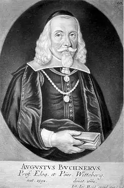 August Buchner (2 November 1591 – 12 February 1661) was a German philologist, poet and literary scholar, an influential professor of poetry and rhetoric at the University of Wittenberg.