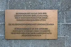 - ^ "Sachsenhausen Memorial to Honor One of Jehovah's Witnesses Executed by Nazis". JW.ORG. JW Newsroom (Germany). Retrieved September 4, 2022.