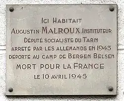 Augustin Malroux (5 April 1900 – 10 April 1945) was a French socialist politician and member of the French Resistance, a teacher by profession.