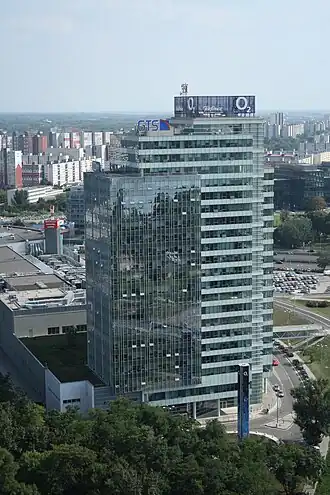 Aupark Tower is a high-rise office building in Bratislava, Slovakia standing at 96 metres (314 ft) tall with 22 floors. It is located in the district of Petržalka which is a part of the Aupark shopping center. It was built by the HB Reavis Group company in 2007. In 2012, Heitman European Property Partners IV purchased the building for €85.6m.[2] Currently, the office space of the building is occupied by a number of tenants, including Telefónica O2 Slovakia, Eset, Procter & Gamble and AT&T, among others.