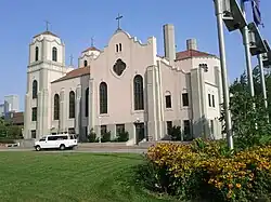 The Spanish Colonial St. Cajetan’s Church, built in 1925, was one of three Catholic churches clustered within a six block radius in the Auraria neighborhood. St. Cajetan’s served as the focus of Auraria’s Spanish-speaking community until 1973, when construction of the Auraria Campus forced the parish to relocate. The landmark church now serves as a multi-purpose auditorium for lectures, concerts, recitals and other community events.[30][34]