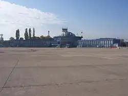 In 1922, the airport headquartered the first aviation company in Romania, and one of the earliest in the world, CFRNA (The French–Romanian Company for Air Navigation), the precursor of the Romanian national airline, TAROM.[6] In 1923, CFRNA built the industrial facilities for aircraft maintenance in Băneasa. These facilities preceded the aerospace company Romaero.[7] During World War II, the airport was used by both Romanian and German units as an aircraft repair hub and also functioned as the headquarters of the Romanian White Squadron. The airport mainly had a grass surface with a single 940 metres (3,080 ft) long concrete runway built in 1942.[8]