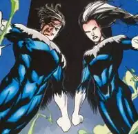 In the Age of Apocalypse reality, Northstar and Aurora were part of Mister Sinister's Elite Mutant Force (E.M.F.) and, as such, were assigned to patrolling the breeding pens. The siblings fully embraced their beliefs of mutant superiority and seemed to take great pleasure in punishing those prisoners who acted up or tried to escape. When the E.M.F.'s leader, Cyclops, switched sides, secretly helping some inmates to escape, he was caught in the act by the speeding twins. However, both of them were defeated by Cyclops and the prisoner he was helping to escape, which happened to be Polaris.[39] When the series was revisited for the 10 year anniversary, it was revealed that following the fall of Apocalypse's regime, the Beaubiers became fugitives until they were killed by Weapon X and Kirika.[40]