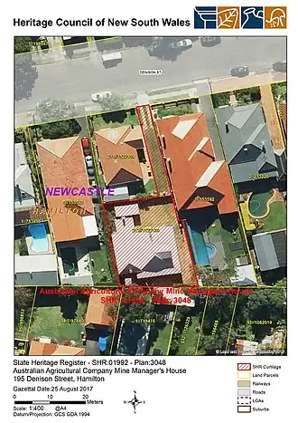 Australian Agricultural Company Mine Manager's House is a heritage-listed former colliery official's residence at 195 Denison Street, Hamilton, a suburb of Newcastle, New South Wales, Australia. It was built from 1849 to 1920. It is also known as A.A. Company House and A. A. Company Mine Manager's Cottage. It was added to the New South Wales State Heritage Register on 25 August 2017.[1]