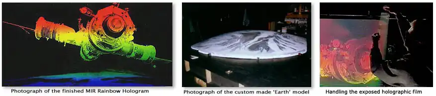The company also produced a 1.5×1.1 metre hologram of a Tyrannosaurus rex skull from the SA Museum's collection. In 1995, a large series of holograms were produced of satellites and space vehicles. There is also a 2.1×1.1 metre rainbow transmission hologram of the MIR Space Station. The model of the Earth in this hologram was custom-made by Adelaide artist John Haratsis.