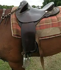 The Australian stock saddle is a saddle in popular use all over the world for activities that require long hours in the saddle and a secure seat. The saddle is suitable for cattle work, starting young horses, everyday pleasure riding, trail riding, endurance riding, polocrosse and is also used in Australian campdrafting competitions and stockman challenges.