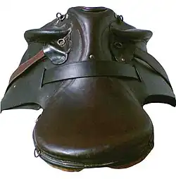 During the early days of buckjumping in Australian rodeos, riders rode in a modified stock saddle using a crupper instead of the "flank cinch" used in the USA. Ladies' stock saddles were traditionally made with a pigskin seat and with longer, pigskin covered knee and thigh pads.