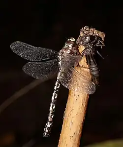 Austroaeschna atrata is a medium-sized to large dragonfly with a very dark colouring and dull markings.[4]