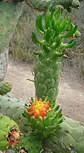 Austrocylindropuntia subulata is a species of cactus native to the Peruvian Andes. The Latin specific epithet subulata means "awl-like", referring to the shape of the rudimentary leaves.[3] It is also known by its common names as Eve's pin and Eve's needle.