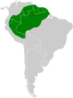The olive-backed foliage-gleaner is a bird of the Amazon Basin. Its subspecies are found thus:[2][8]