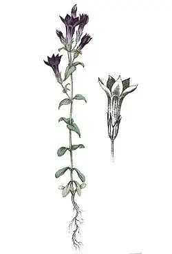 Gentianella amarella, the autumn gentian, autumn dwarf gentian,[3] or autumn felwort,[4] is a short biennial plant flowering plant in the gentian family, Gentianaceae. It is found throughout Northern Europe, the western and northern United States, and Canada.[3][5][6]