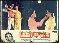 Avale Nanna Hendthi (ⓘ transl. She is my wife) is a 1988 Indian Kannada-language comedy drama film directed by S. Umesh and K. Prabhakar, and produced by Vijay Films. It stars Kashinath and Bhavya. Dealing with the prevalent social issue of dowry system, the plot revolves around a man's struggle in getting his sister's marriage arranged to fulfill his mother's and sisters-in-law's desire for a dowry, despite being in love himself and wanting to marry first.[1] It features Mukhyamantri Chandru, N. S. Rao, Gora Bheema Rao, Thyagaraja Urs and Tara in supporting roles.
