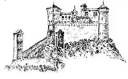 Drawing of the castle of Avigliana taken from a fresco in the Church of San Pietro, Avigliana
