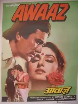 Awaaz (transl. Voice) is a 1984 Hindi action crime film directed by Shakti Samanta with Rajesh Khanna in the lead role and supported by Jaya Prada, Rakesh Roshan, Suresh Oberoi, Supriya Pathak, Iftekar, Prem Chopra, Madan Puri and Amrish Puri.[1][2] The music is by R.D.Burman.[3] The songs are sung by Kishore Kumar for Rajesh, and by Asha Bhonsle for the females. This film marked the first return of the Shakti-Rajesh team after Anurodh in 1977