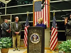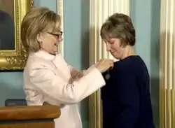 Secretary Clinton pins Award for Heroism on Principal Officer Lynne Tracy