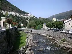 ![]() View towards the town and the Camp de Gramou bridge over the Ariège | |