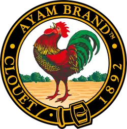 Alfred Clouet, a French citizen, founded Ayam Brand in 1892 in Singapore, which at that time was a part of British Malaya. The business focused on supplying food for colonial staff. They also produced building materials. At that historic era, the food brand was created to be a seal of quality, as canned food was then regarded as a luxury, inaccessible to the general public. Clouet used a rooster as the logo of the brand; it was a symbol of his home country. The brand name was generated by local traders and consumers, as they started referring to the canned sardines or salmon as Ayam Brand (ayam being the Malay word for 'chicken' or 'rooster').[2][3][4]