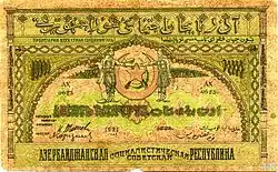 The issue of paper money of the Azerbaijan Socialist Soviet Republic began in April 1920 and lasted until January 1923. All previous issues of money were cancelled.[2]