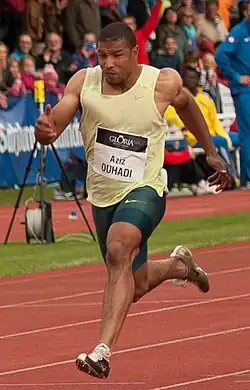 Aziz Ouhadi (Arabic: عزيز أوحادي; born 24 July 1984 in Khemisset) is a Moroccan track and field athlete who competes in the 100 metres and 200 metres. His 100 m personal best of 10.09 seconds is the Moroccan national record. He was part of the Morocco team for the 2012 London Olympics.[1] He represented his country at the 2009 and 2011 World Championships and 2012 World Indoor Championships and has won medals at the Jeux de la Francophonie and the Military World Games.