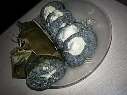 There are also variations of bánh chưng for vegetarians and Buddhists, such as bánh chưng chay (vegetarian chưng cake) or bánh chưng ngọt (sweetened chưng cake). Instead of being stuffed with pork these cakes are filled with molasses or brown sugar.[2] In these variations sometimes the glutinous rice is mixed with gac, giving the cake a red skin considered more appetizing. In the countryside bánh chưng chay was once made by the poor families who could not afford pork for stuffing. They replaced pork with cardamom, black pepper and cooked mung bean. This type of bánh chưng was eaten with molasses.[22]