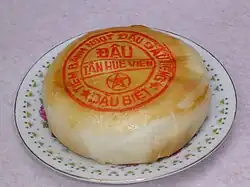 Bánh pía, sometimes spelled as bánh bía, is a type of Vietnamese bánh (translated loosely as "cake" or "bread"). A Suzhou style mooncake adapted from Teochew cuisine, called "lâ-piáⁿ" (朥餅, Teochew Peng'im: la⁵ bian²). The Vietnamese name comes from the Teochew word for pastry, pia (餅 or 餠, Peng'im: bian², POJ: piáⁿ, round flat cake, pastry, cookie, biscuit).