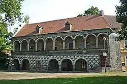 The town hall was built in 1515. In 1884, the façade was reconstructed in the Neo-Renaissance style. On the ground floor is the town information centre with a portal from 1555.[4]