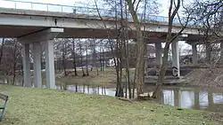 A technical monument is the former hatch bridge weir on the Ploučnice. It was built in connection with the regulation of the river in 1910. The movement of the hatches suspended on the frames under the bridge automatically regulated the water level and the speed of the current with its pressure. It is now used as a footbridge.[4]