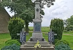 According to the 1 December 1910 census, among 338 inhabitants of Błażejowice Dolne, 14 spoke German, 248 spoke Polish, and 76 were bilingual.[22] In the village, there was an inn named "Im Krug zum grünen Kranze", run by Magdalena Wollek.[23] After the First World War, a monument dedicated to people from Błażejowice Dolne who died in the war, was erected in the village.[24] Only a portion of Prudnik County participated in the 1921 Upper Silesia plebiscite, which was supposed to determine ownership of the Province of Upper Silesia between Germany and Poland. Błażejowice Dolne found itself in the eastern part of the county, within the plebiscite area.[25] 210 people of Błażejowice Dolne voted to remain in Germany, and 14 voted to secede for Poland. In the end, the area of Prudnik, along with Błażejowice Dolne, remained in Germany.[26]