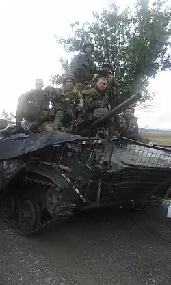 During the Russo-Ukrainian War in 2014 in Eastern Ukraine, BMD-1s were used both by mechanized units of the Ukrainian Army[25] and in smaller numbers by the separatists of the Donetsk People's Republic. It was claimed that a BMD-1 was one of the six armored vehicles in Separatist forces defending Sloviansk when it was besieged.[26]