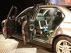 The armoured "Protection Line" vehicles were built from 2000 to 2001 and were based on the 740iL and 750iL models.[38] Security features include body armor, bullet-resistant glass, and run-flat tyres.[39][40] An intercom system is provided to communicate with people outside the vehicle while the windows and doors are shut.[41]