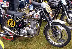 The BSA Gold Star is a motorcycle made by BSA from 1938 to 1963. They were 350 cc and 500 cc single-cylinder four-stroke production motorcycles known for being among the fastest bikes of the 1950s. Being hand-built and with many optional performance modifications available, each motorcycle came from the factory with documented dynamometer test results, allowing the new owner to see the horsepower (bhp) produced.[4]