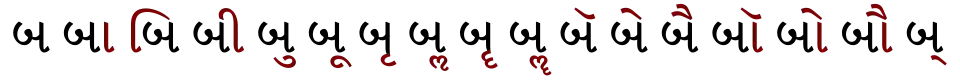 | ब | बा | बि | बी | बु | बू | बृ | बॄ | बॢ | बॣ | बे | बै | बो | बौ | ब् |