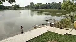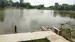Baag Taraag Pushpavatika (Maithili: बाग तराग पुष्पवाटिका) is a legendary place in the Mithila region of Bihar. It is related to the Hindu epic Ramayana. It is located at Phulhar village of the Harlakhi block in the Madhubani district. The location is mentioned in the text Ramacharitmanas composed by the Awadhi poet Tulsidas.[1][2] It is at a distance of 350 metres from the site of the Girija Sthan Dham.[3] Baag Taraag is a sacred pond and similarly Pushpavatika is the name of the legendary flower garden on its bank mentioned in the text Ramayana. In the legendary garden, there is a temple dedicated to Lord Rama and Goddess Sita. The temple is known as Prabhu Shree Sitaramji Pratham Milan Mandir.[4] It is identified as the origin place of love between the divine couple in Ramayana.[5]